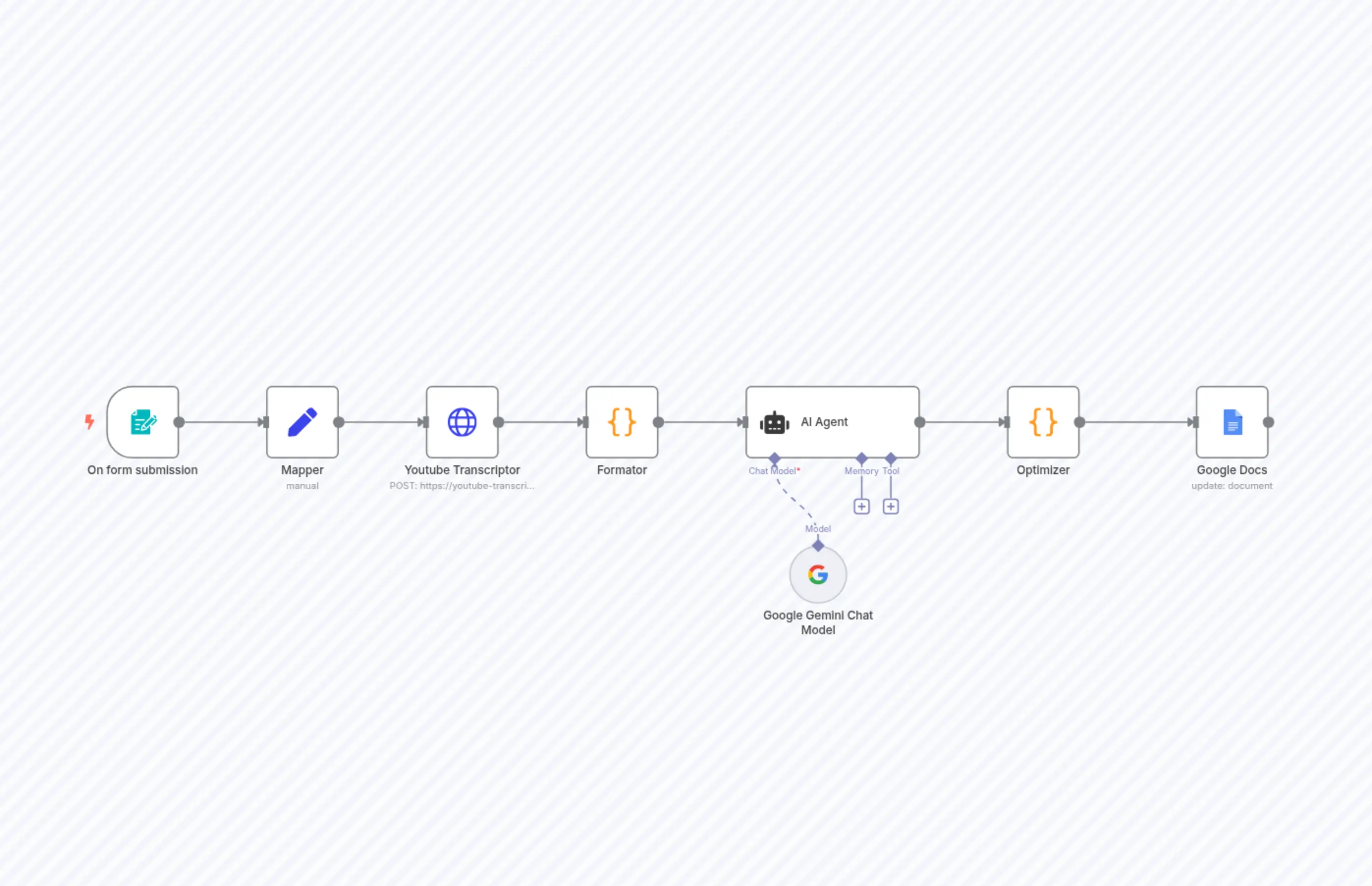 n8n-nodes-base.setn8n-nodes-base.coden8n-nodes-base.coden8n-nodes-base.googleDocsn8n-nodes-base.formTriggern8n-nodes-base.httpRequest@n8n/n8n-nodes-langchain.agent@n8n/n8n-nodes-langchain.lmChatGoogleGemini